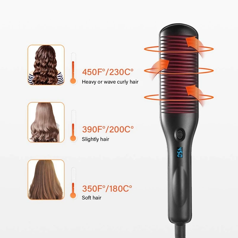 REVIEW TOP SELLER US Plug Hair Straightener Brush Ceramic Heating Hair Straightening Comb with Anti-Scald30S Fast Cer