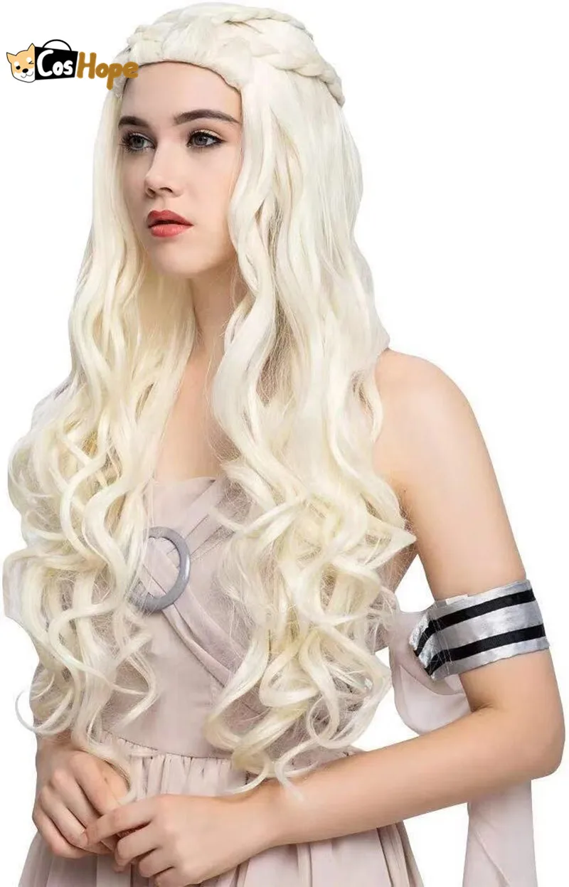 Daenerys Targaryen Cosplay Wig Long Off White Khaleesi Curly Wave Wigs Anime Heat Resistant Synthet