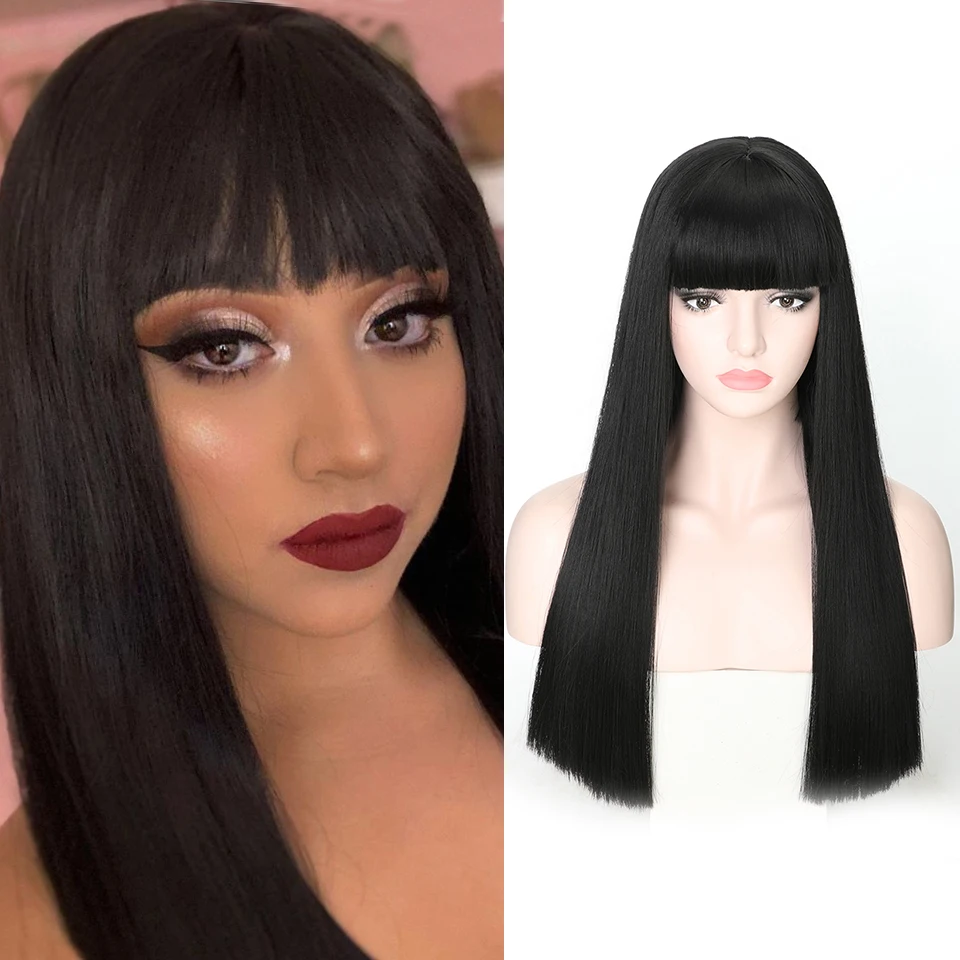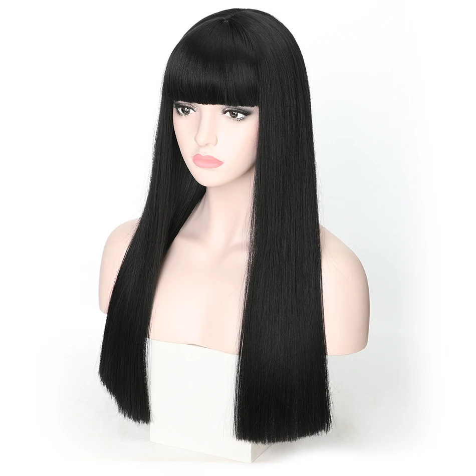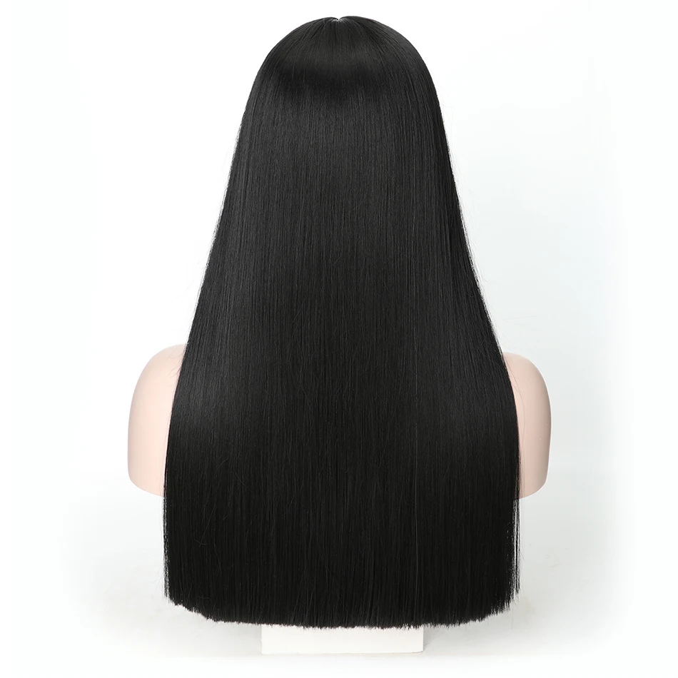 FREEWOMAN Black Lace Wig Synthetic Hair Extensions Bang Wigs For Women Straight Synthetic Hair Heat