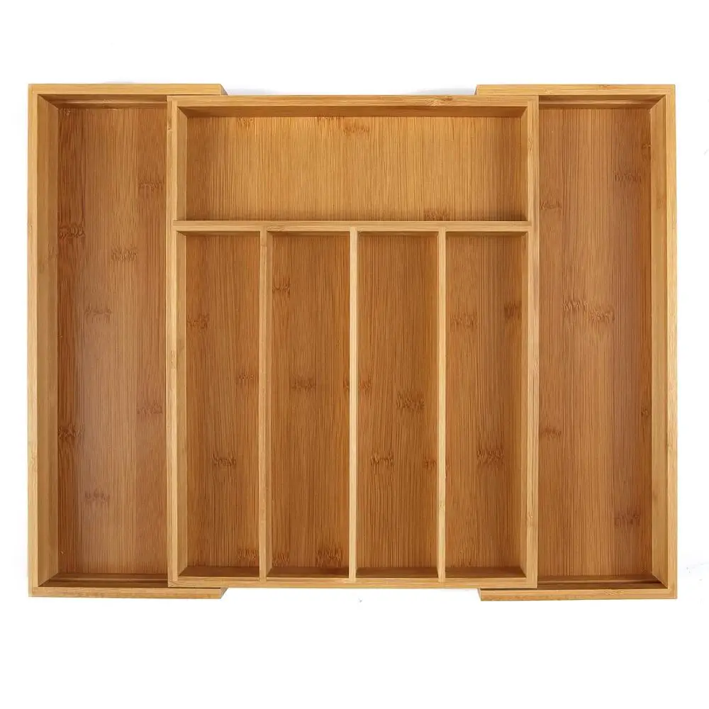 HOT Sale 7-grids Multifunctional Kitchen High Quality Retractable Bamboo Drawer Organizer Storage Box for Ki